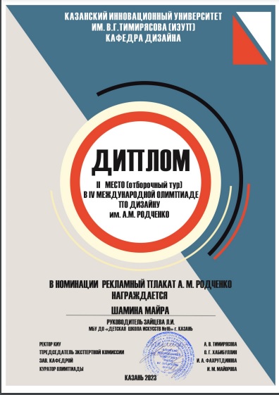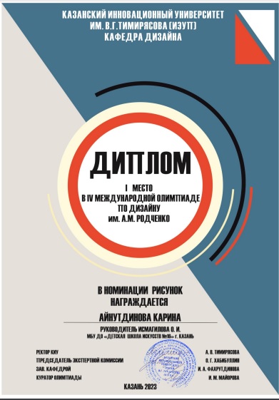 Айнутдинова Карина - диплом 1 место IV Международной олимпиады по дизайну им.А. Родченко