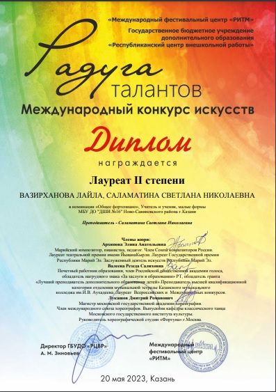Вазирханова Лайла, Саламатина С. Н. - лауреат 2 степени "Радуга талантов".jpg