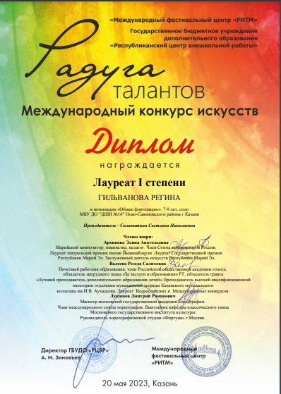 Гильванова Регина - Лауреат 1 степени "Радуга талантов".jpg