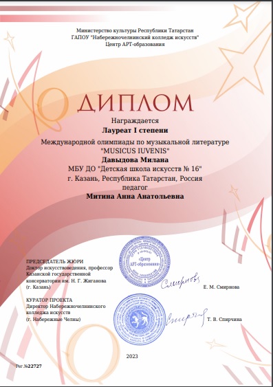 Давыдова Милана -лауреат 1 степени Олимпиада по муз.литературе "Musicus Iuvenis".jpg