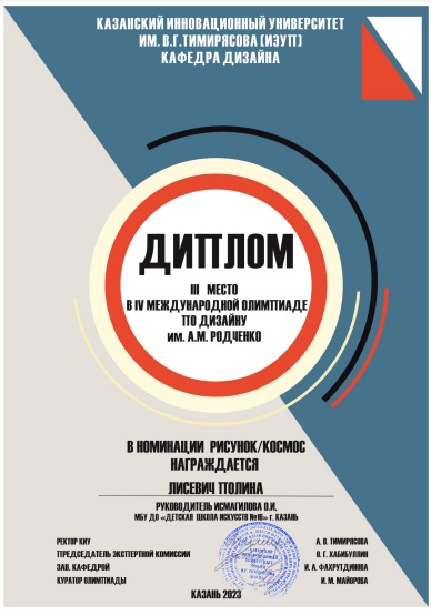 Лисевич Полина - диплом 3 место IV Международной олимпиады по дизайну им.А. Родченко