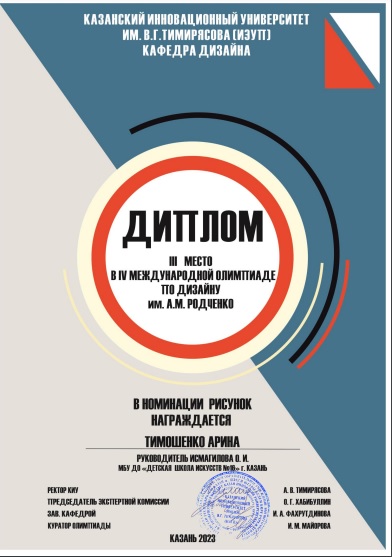 Тимошенко Арина - диплом 3 место IV Международной олимпиады по дизайну им.А. Родченко