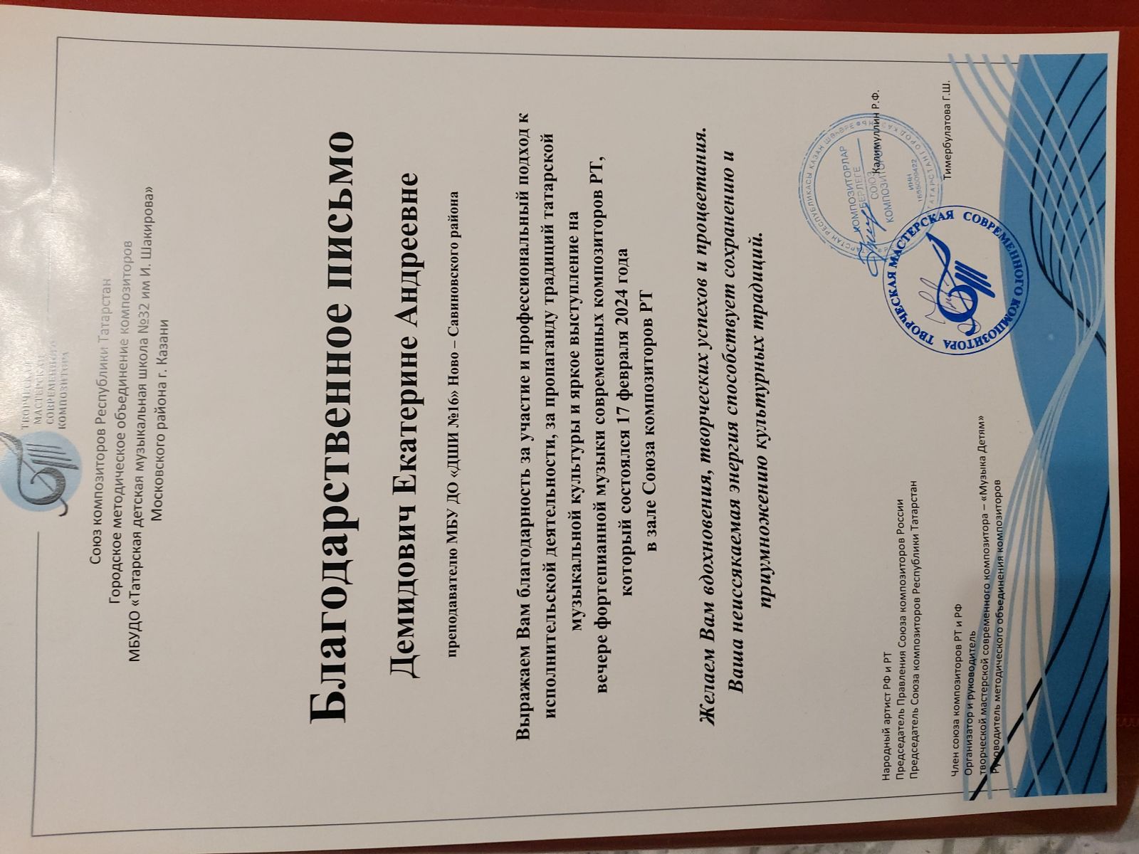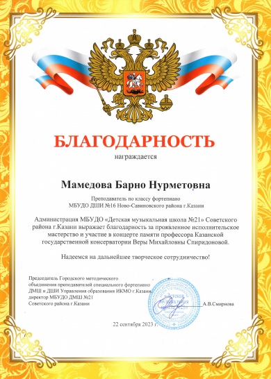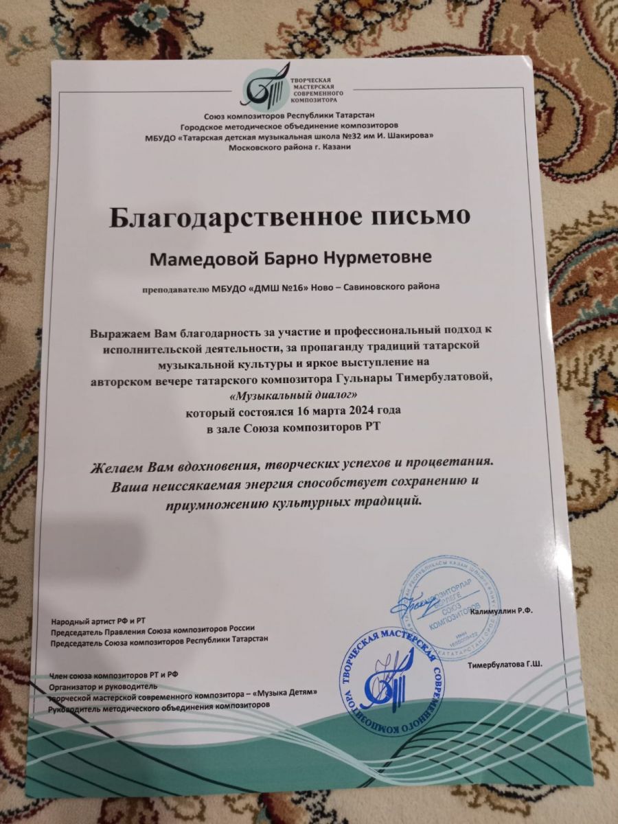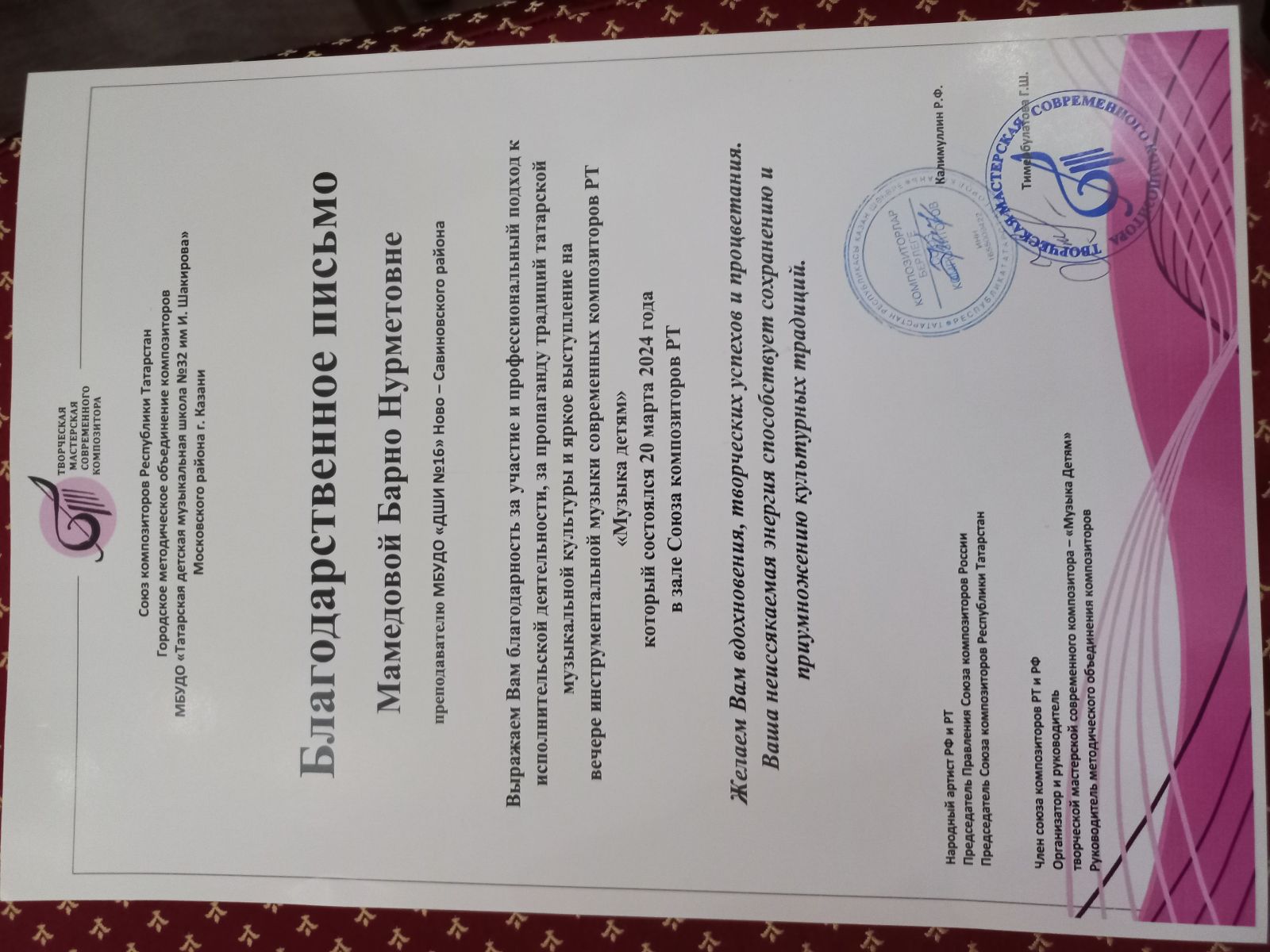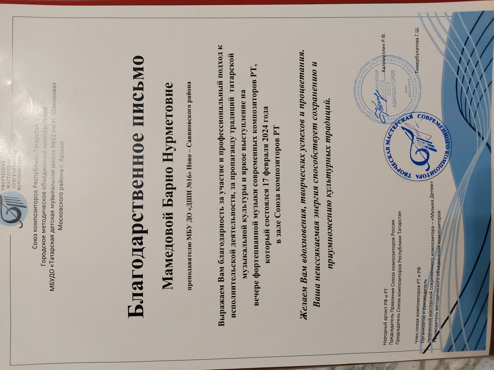 29.Мамедова Б.Н. - благ. письмо за участие в концерте "Музыкальный диалог" в зале Союза композиторов