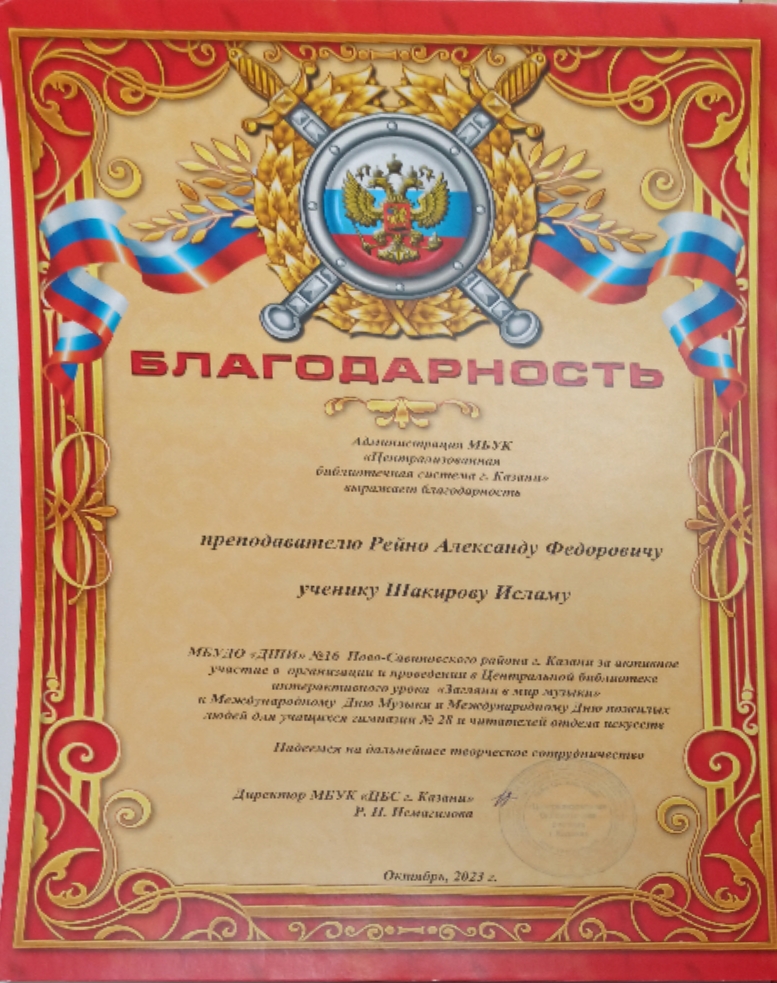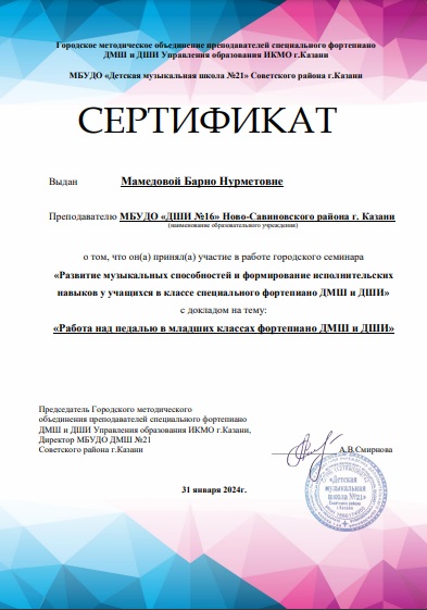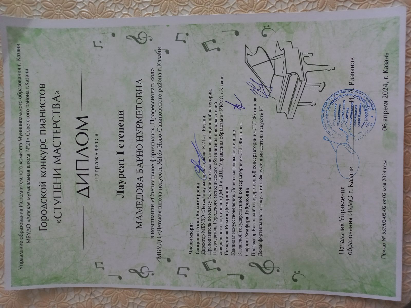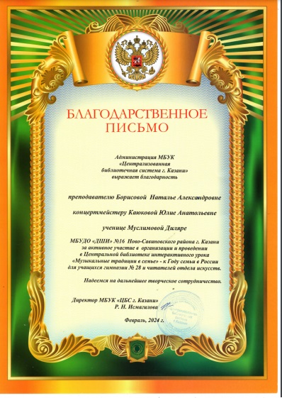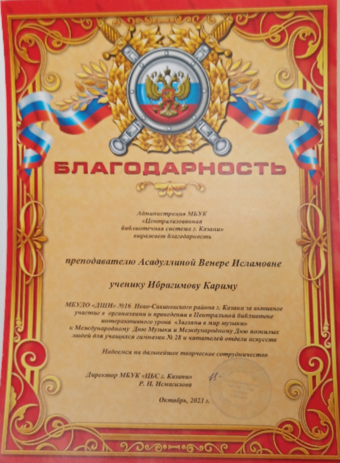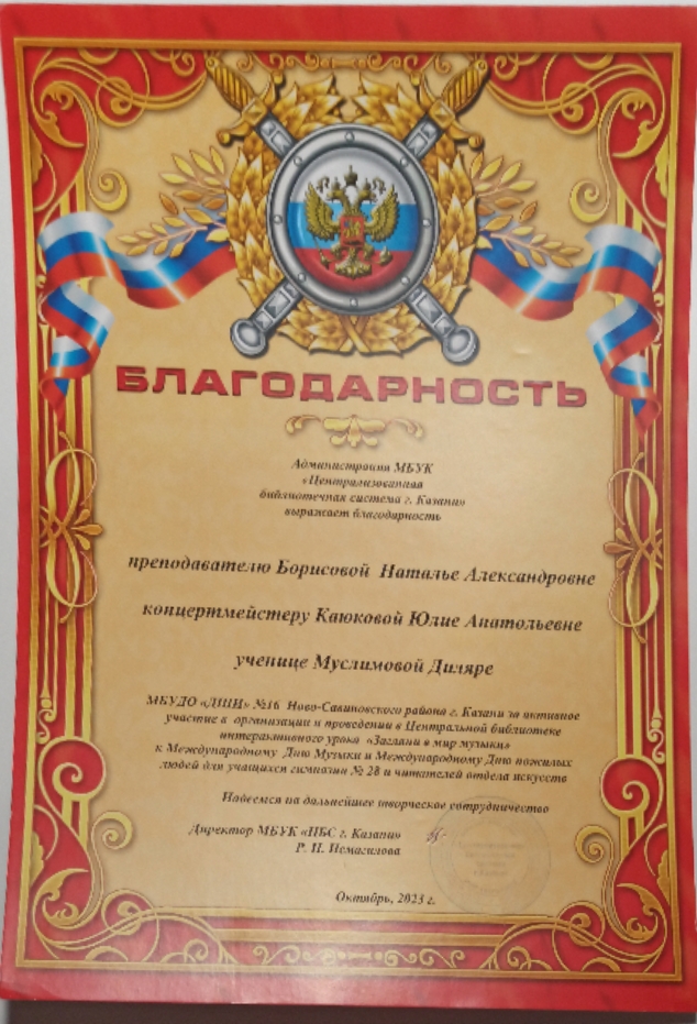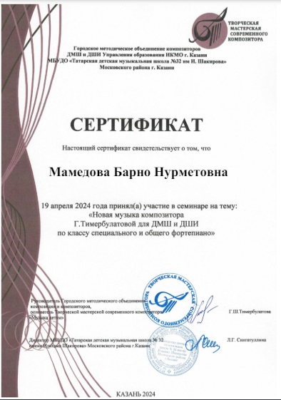29.Мамедова Б.Н. - благ. письмо за участие в концерте "Музыкальный диалог" в зале Союза композиторов