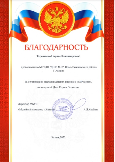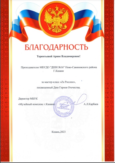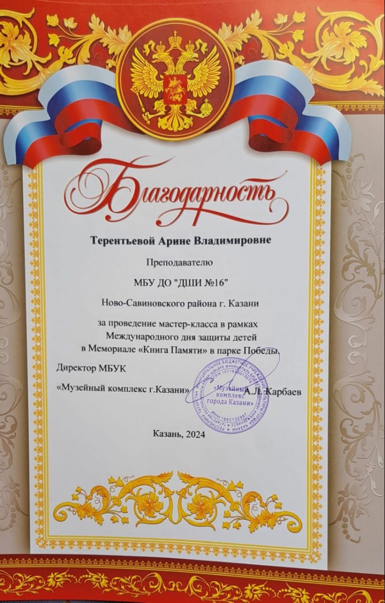 47. Терентьева А.В. - благ. письмо за мастер класс к Международному дню защиты детей в "Книге Памяти"
