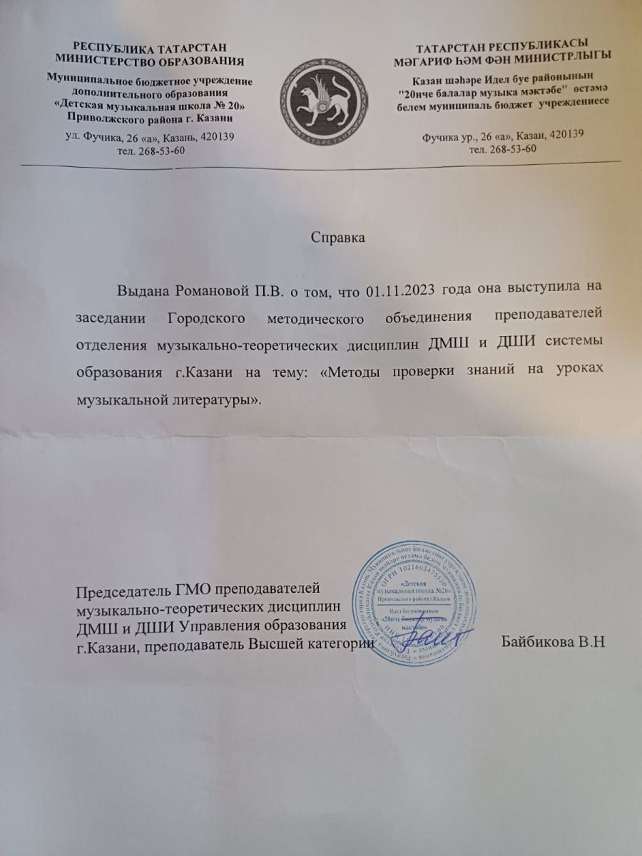 27.Мамедова Б.Н. - благ. письмо за вечер музыки современных тат. композиторов в зале Союзе композиторов