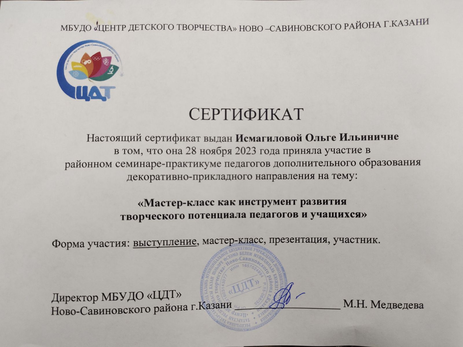 18.Исмагилова О.И. - сертификат ГМО семинара "Мастер класс как показатель профессионального мастерства"