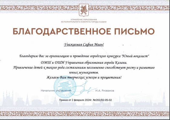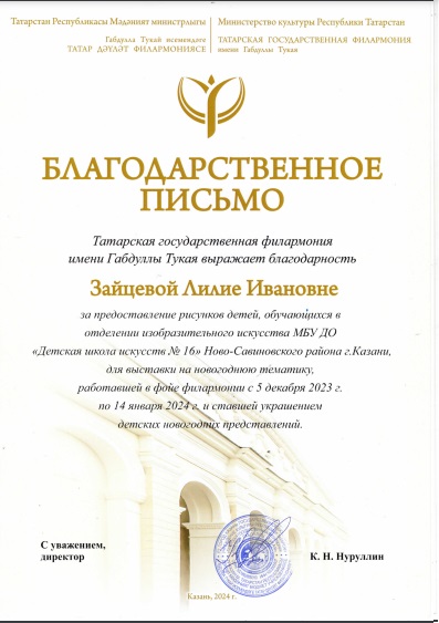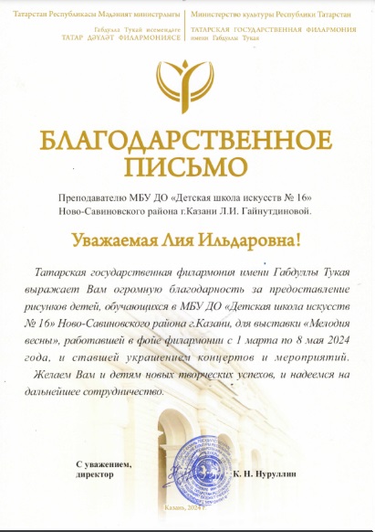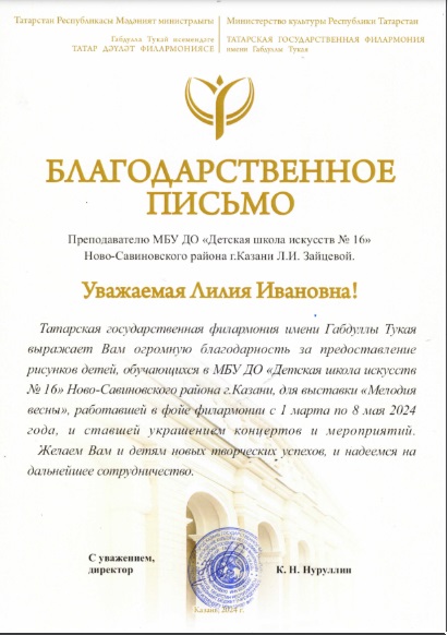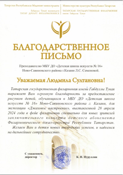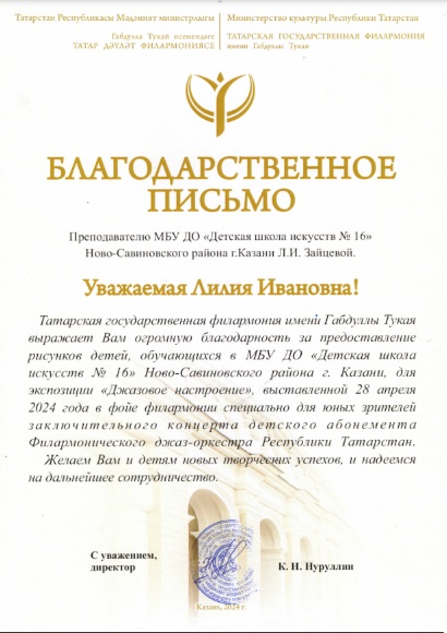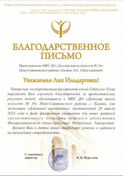 37.Гайнутдинова ЛИ - благ. письмо за предоставление рисунков в филармонию на тему "Джазовое настроение"
