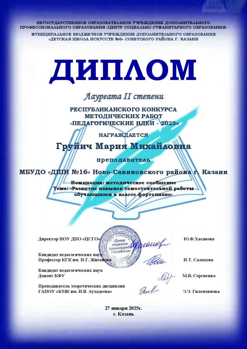 9. Груйич.М.М. Лауреат 2 степени. Республиканский конкурс методических работ "Педагогические идеи-2025"