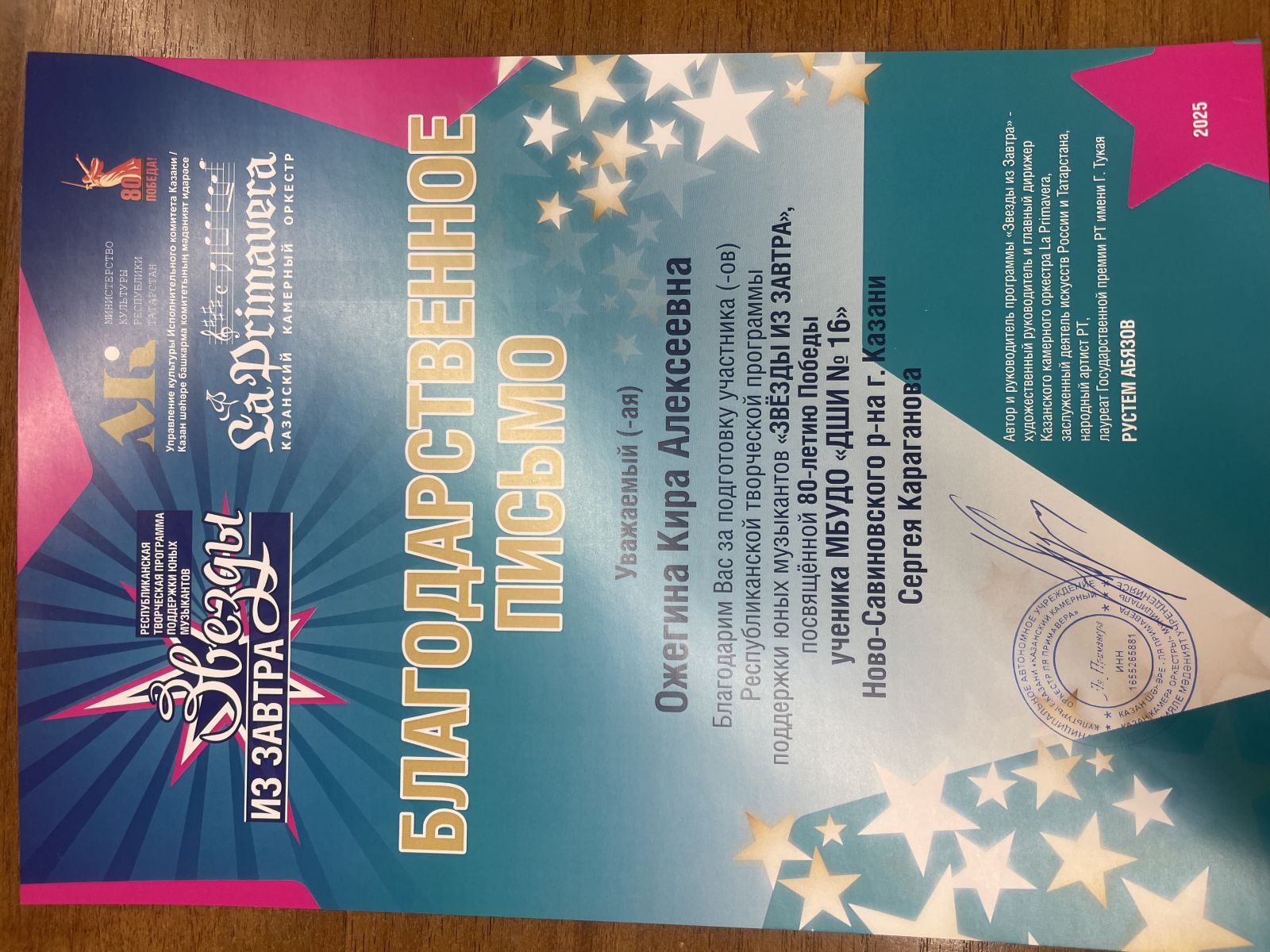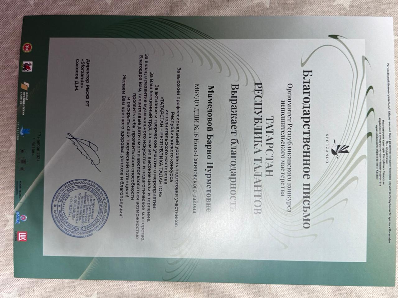 Благодарственные письма: