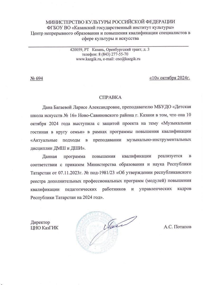 1. Багаева Л.А. Справка о защите проекта в рамках КПК
