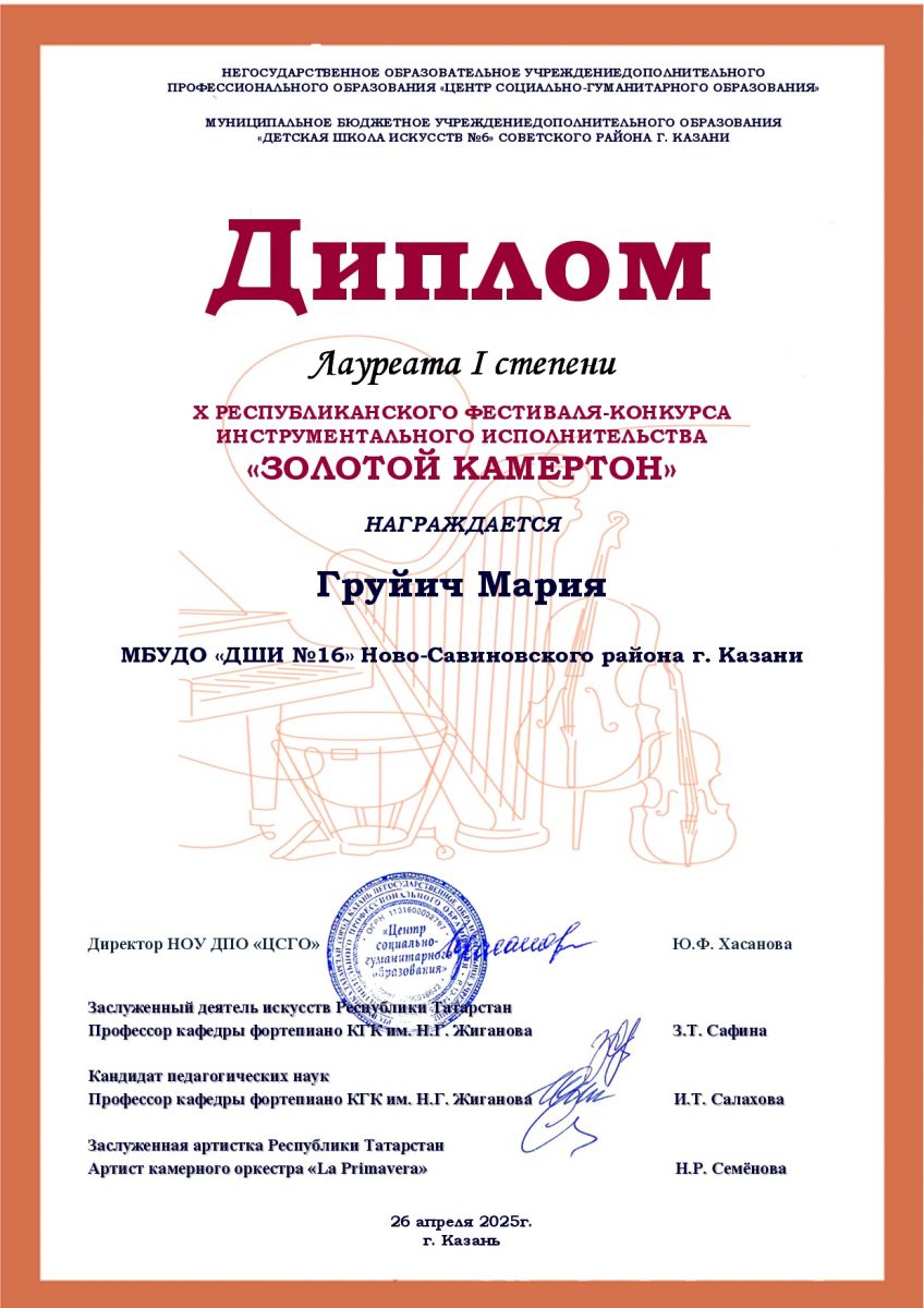 15. Груйич М.М. Лауреат 1 степени. X Республиканский фестиваль-конкурс «Золотой камертон»