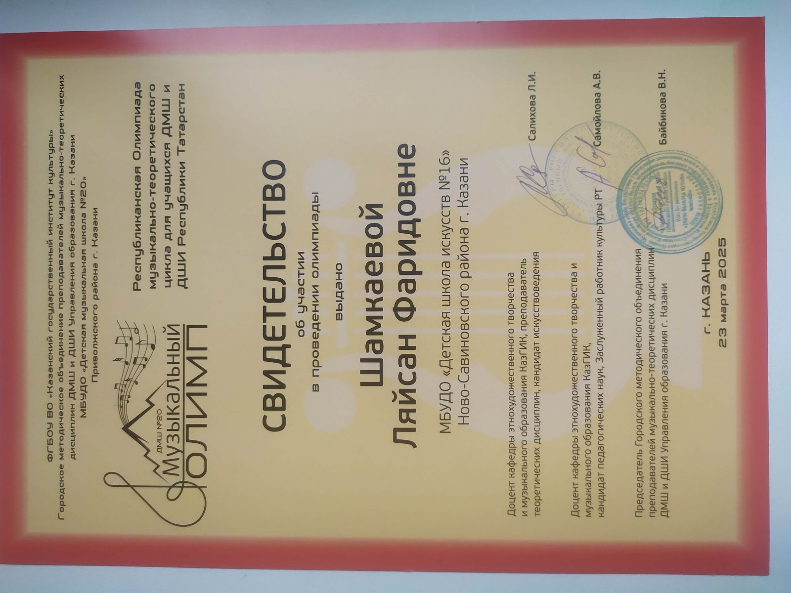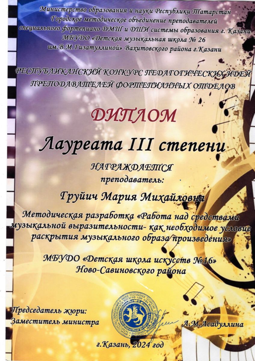 3. Нигматуллина Г.Ш. VI Республиканский конкурс "Музыкальная семья"