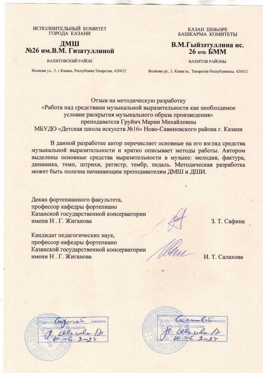 1. Груйич М.М. Отзыв профессоров КГК им.Жиганова на методическую разработку