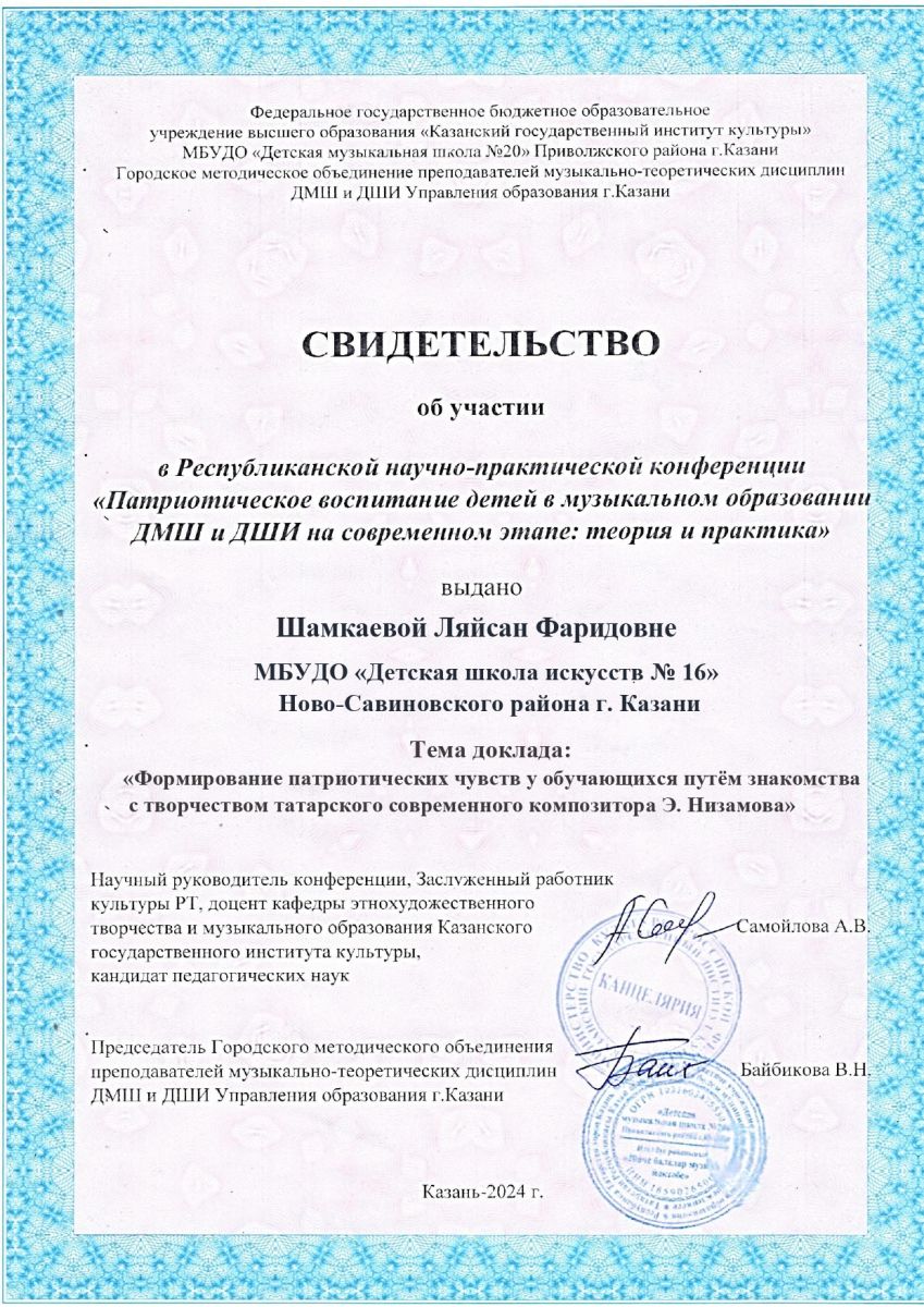 3. Мамедова Б.Н., Гайнутдинова Л.И. Свидетельство о публикации материала в сборнике Алишевских чтений