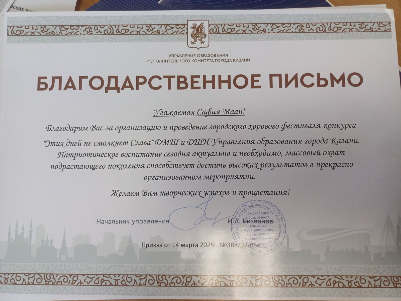 47. Асадуллина В.И., Хикматуллин Карим. Благодарственное письмо. Концерт-лекция «Музыка Великой Победы»