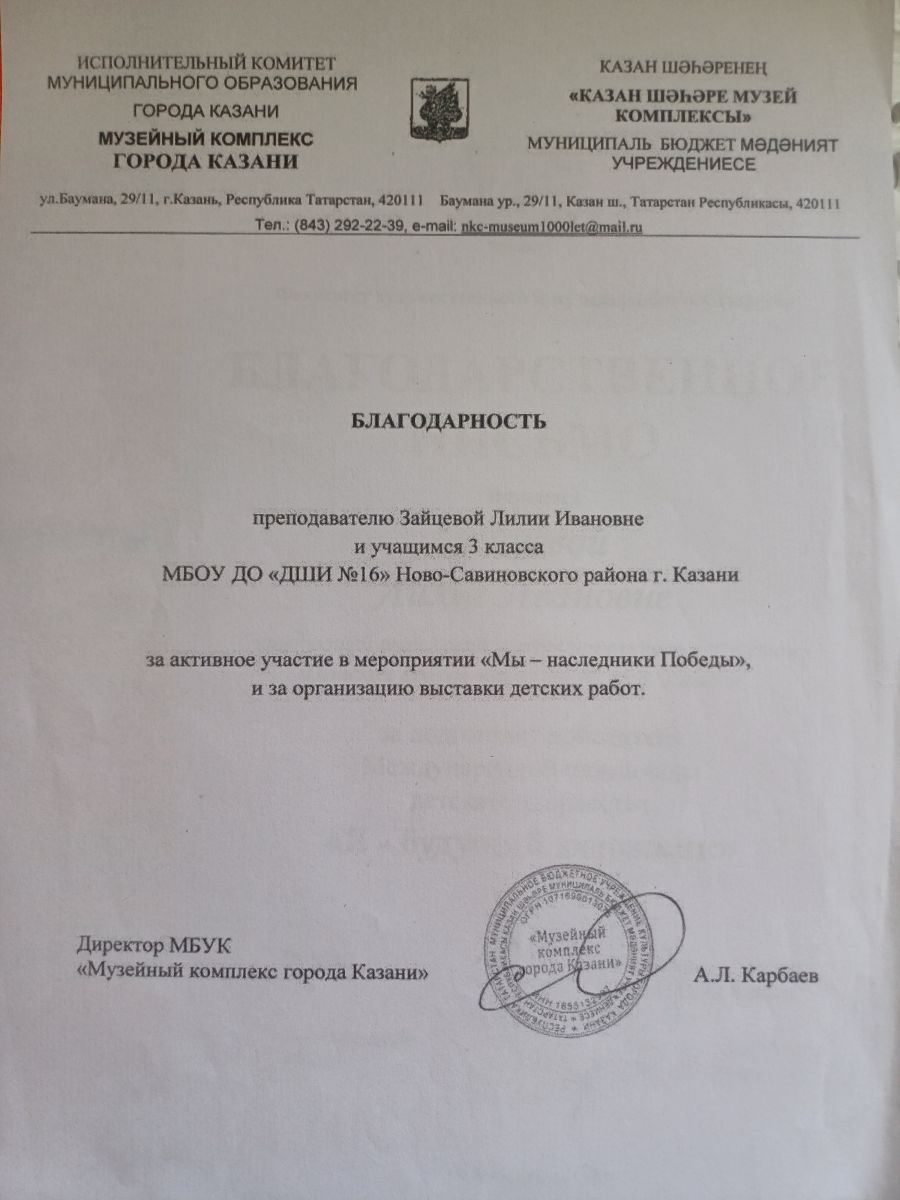 46. Асадуллина В.И., Ибрагимов Карим. Благодарственное письмо. Концерт-лекция «Музыка Великой Победы»