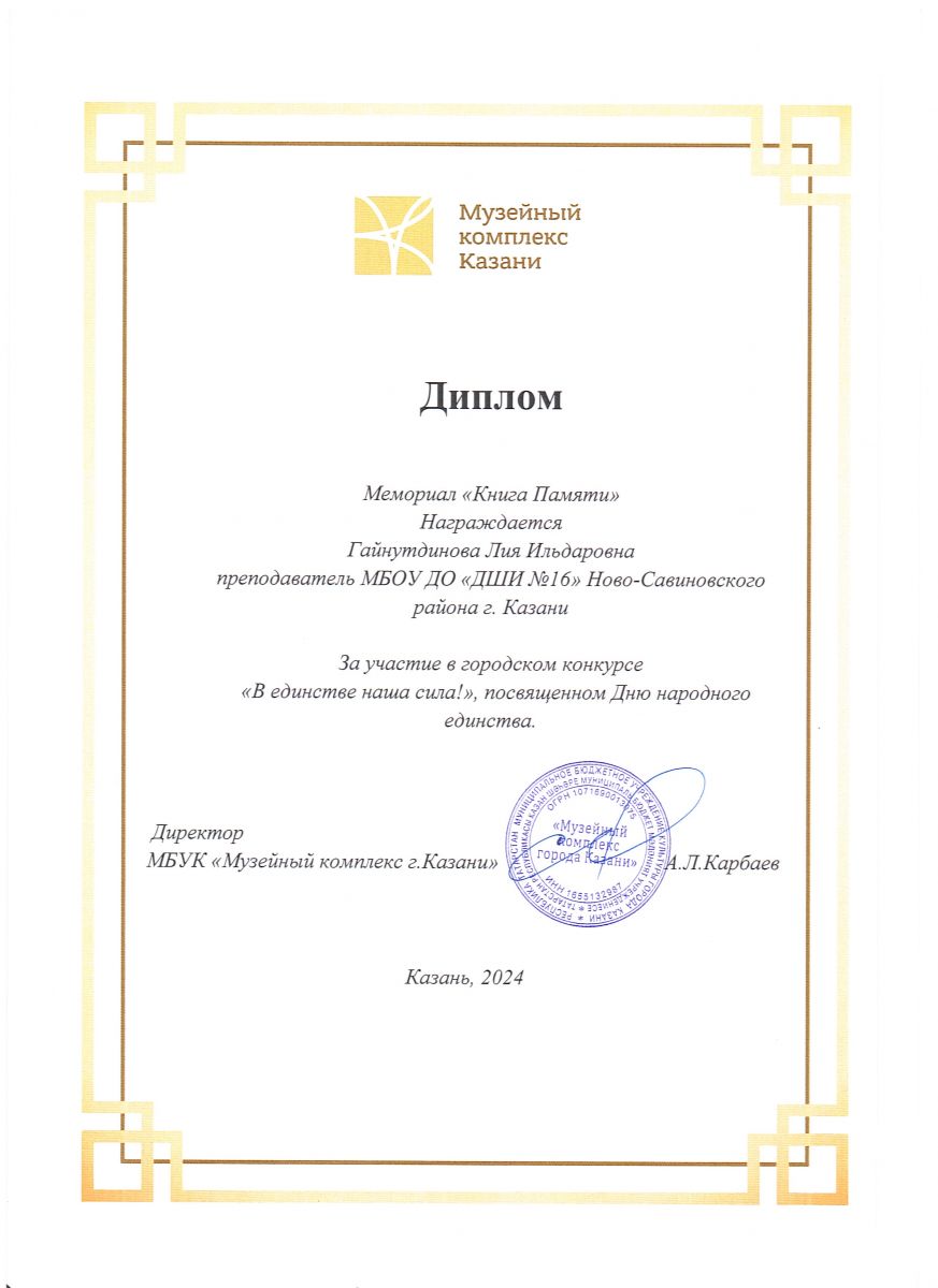 1. Гайнутдинова Л.И. Городской конкурс "В единстве наша сила!", посвященный Дню народного единства