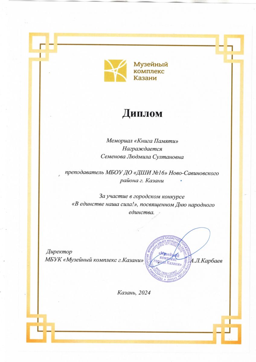 3. Семенова Л.С. Городской конкурс "В единстве наша сила!", посвященный Дню народного единства