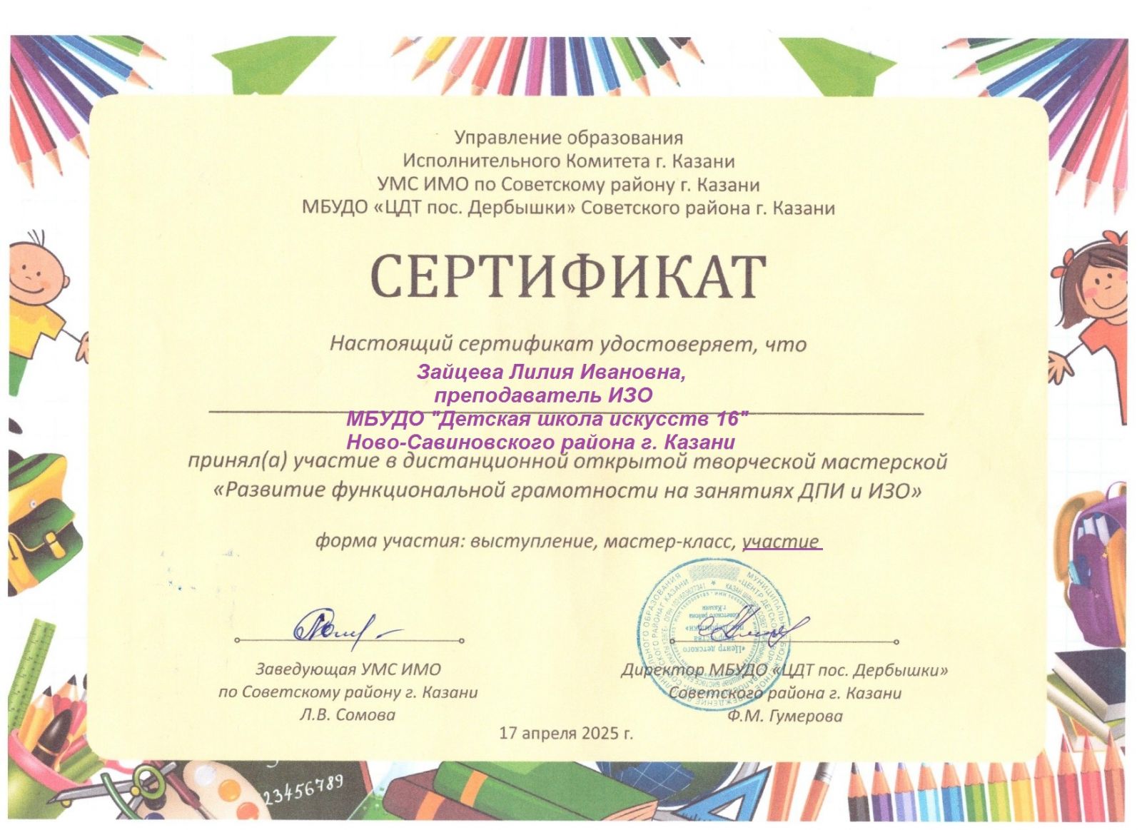 1. Зайцева Л.И. Сертификат об участии на ГМО (слушатель)