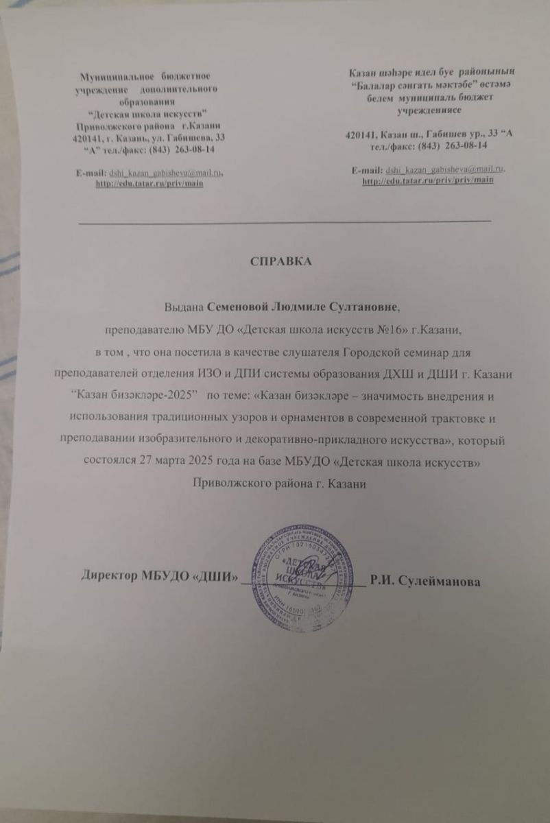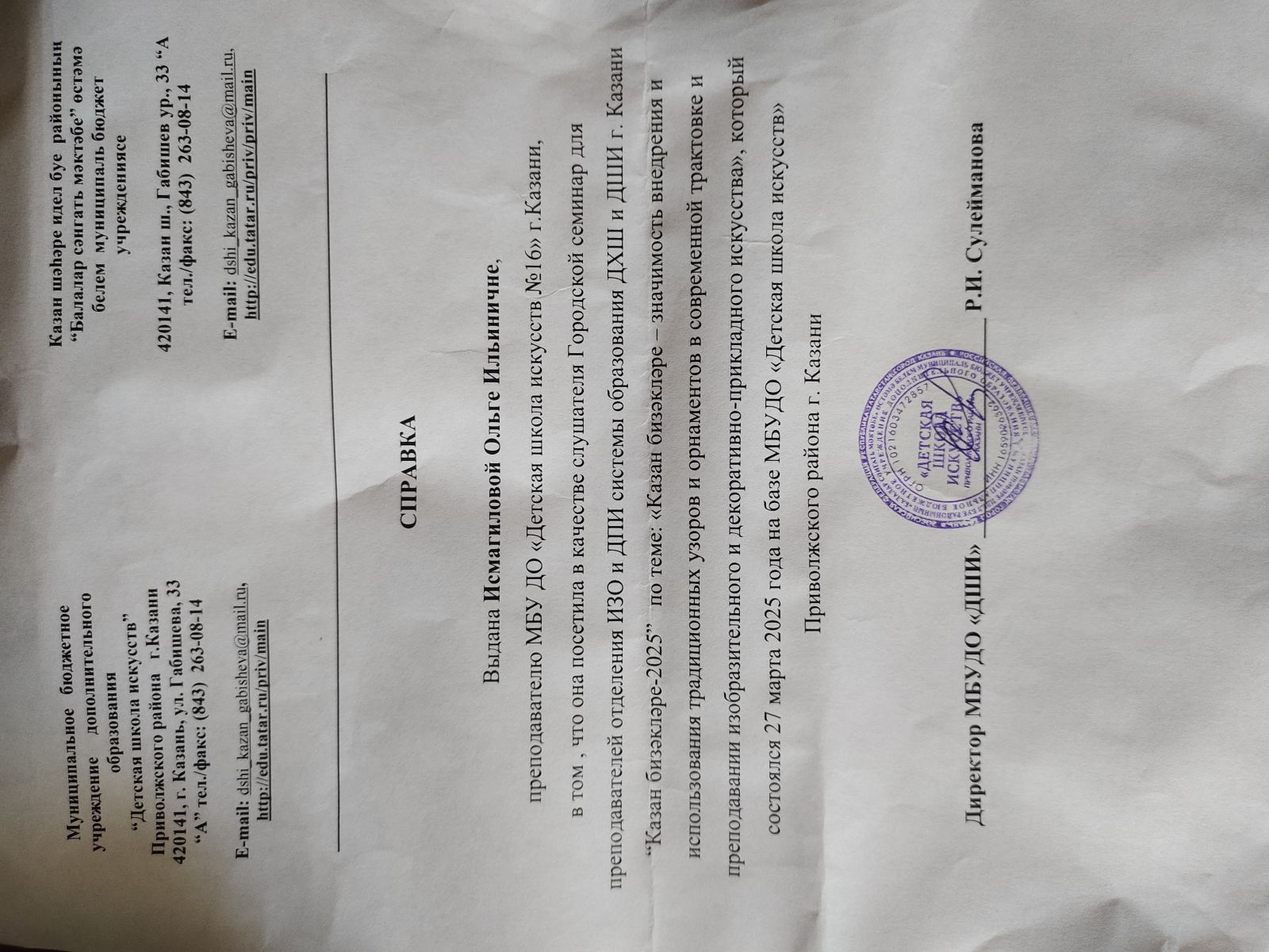 11. Исмагилова О.И. Городской семинар «Казан бизэклэре - 2025». Справка слушателя