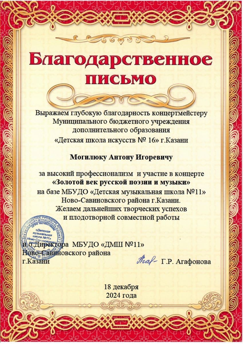 9. Могилюк А.И. Благодарственное письмо. Концерт "Золотой век русской поэзии и музыки"