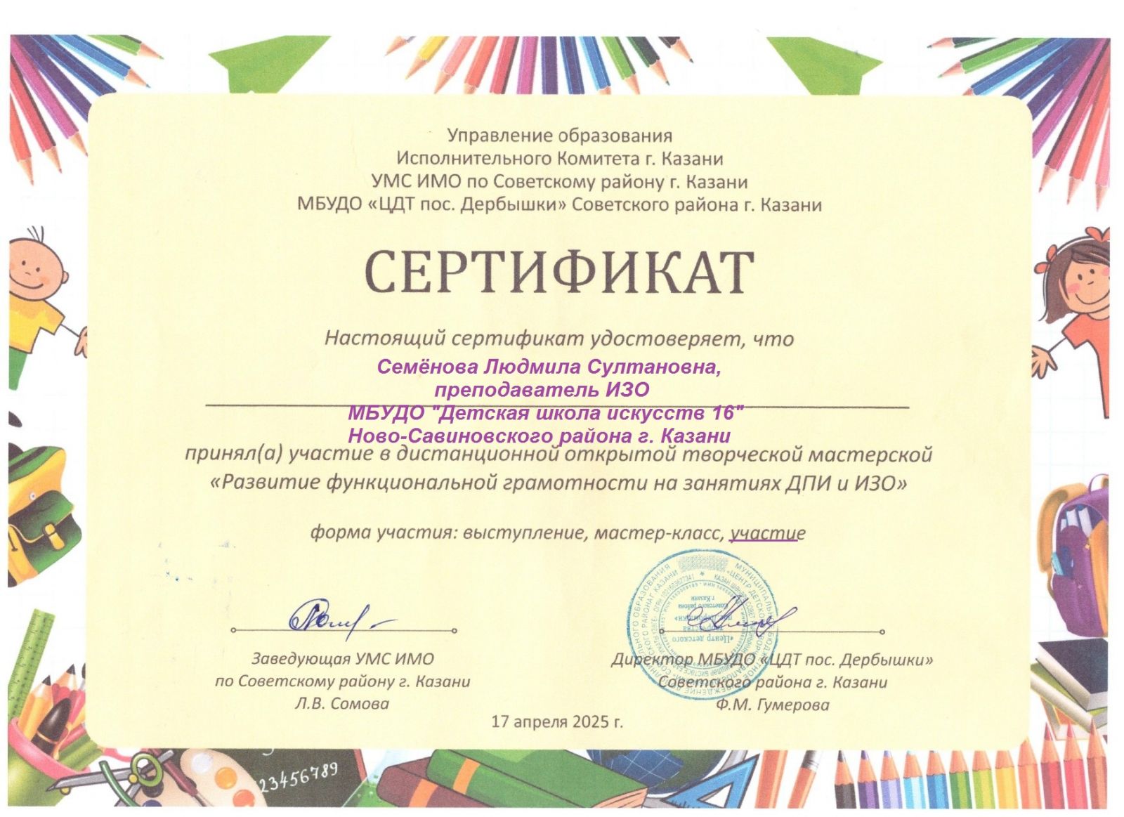 12. Семенова Л.С. Городской семинар «Казан бизэклэре - 2025». Справка слушателя