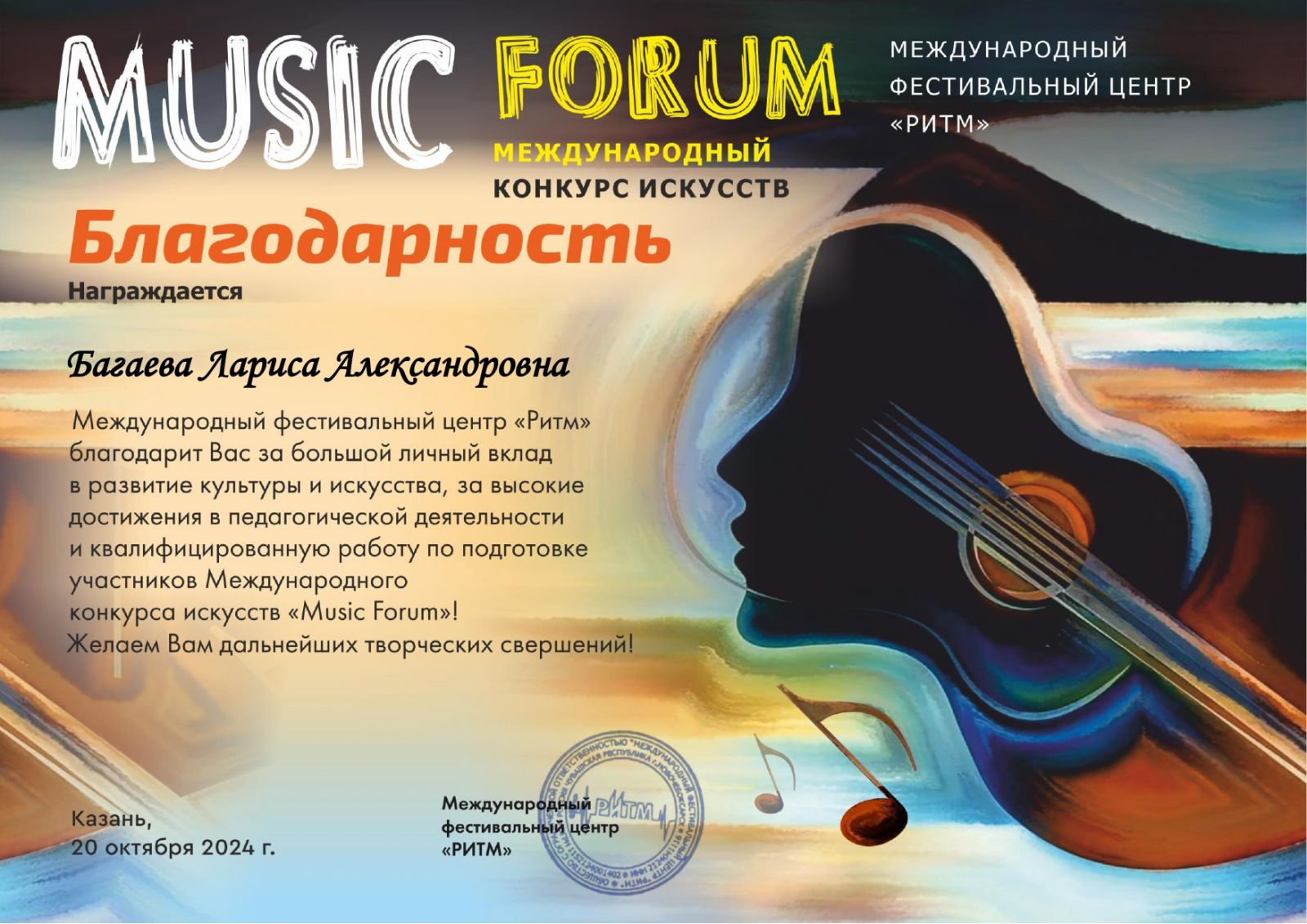 1. Багаева.Л.А. Благодарность. Международный конкурс искусств «Music forum»