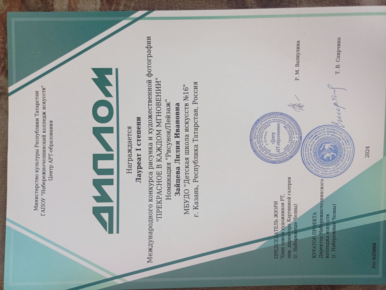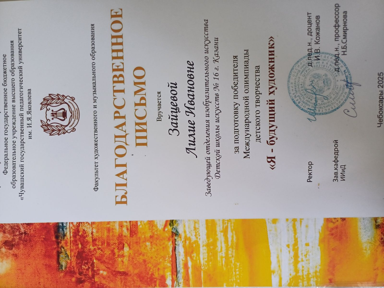 2. Могилюк А.И.Благодарность. Международный конкурс искусств «В ритме времени»