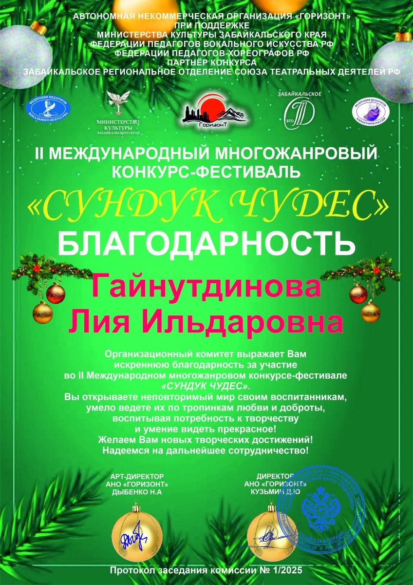 9. Гайнутдинова Л.И. Благодарность. Международный многожанровый конкурс-фестиваль «Сундук чудес»