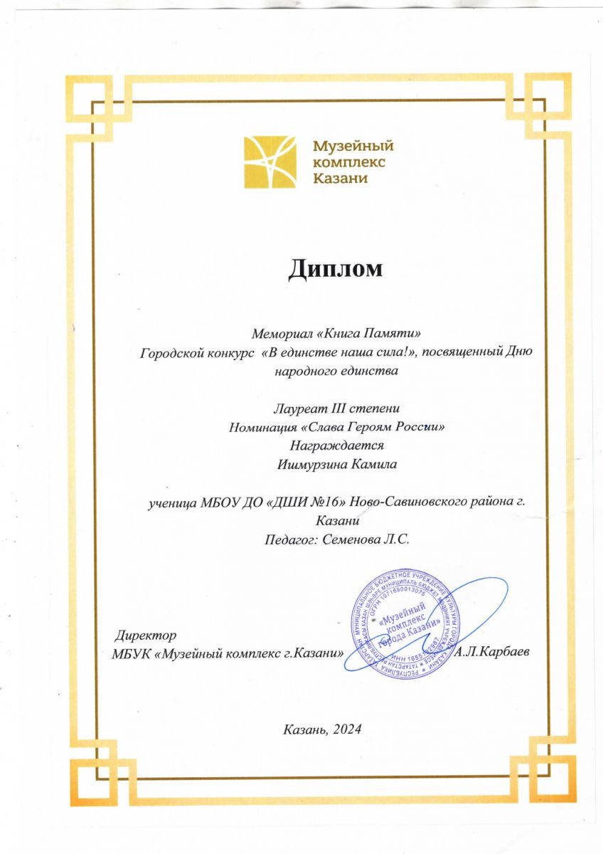 16. Ишмурзина Камилла диплом 1 степени Городской конкурс "Родной край"