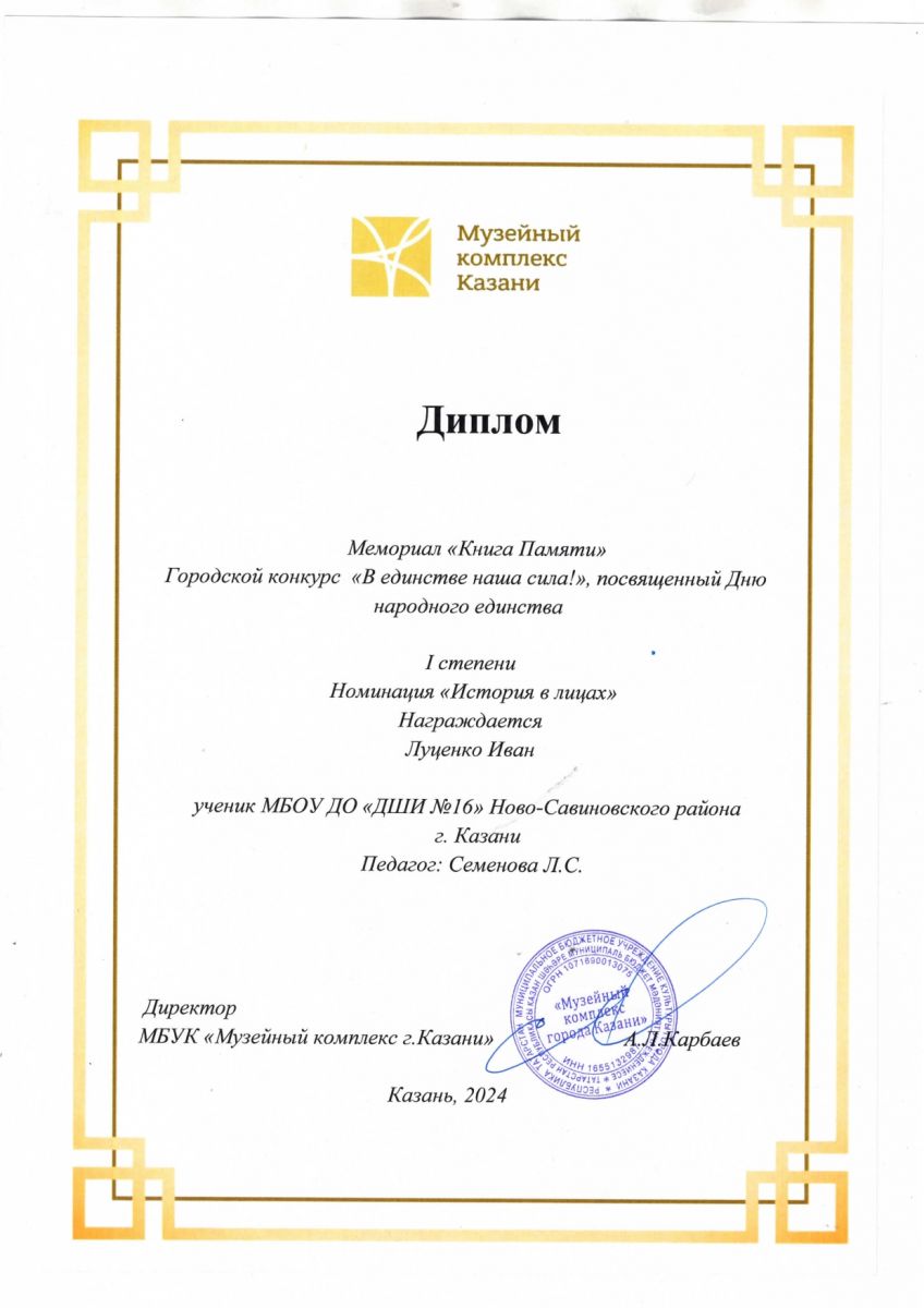 1. Луценко Иван городской конкурс «В единстве наша сила!» - диплом 1 степени