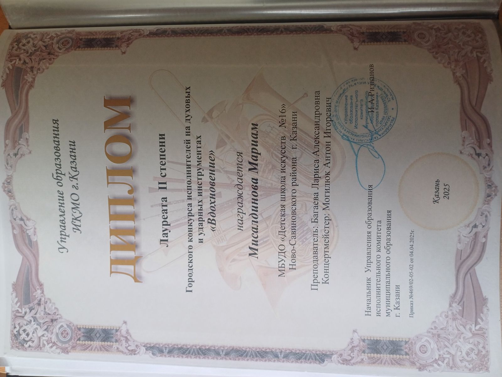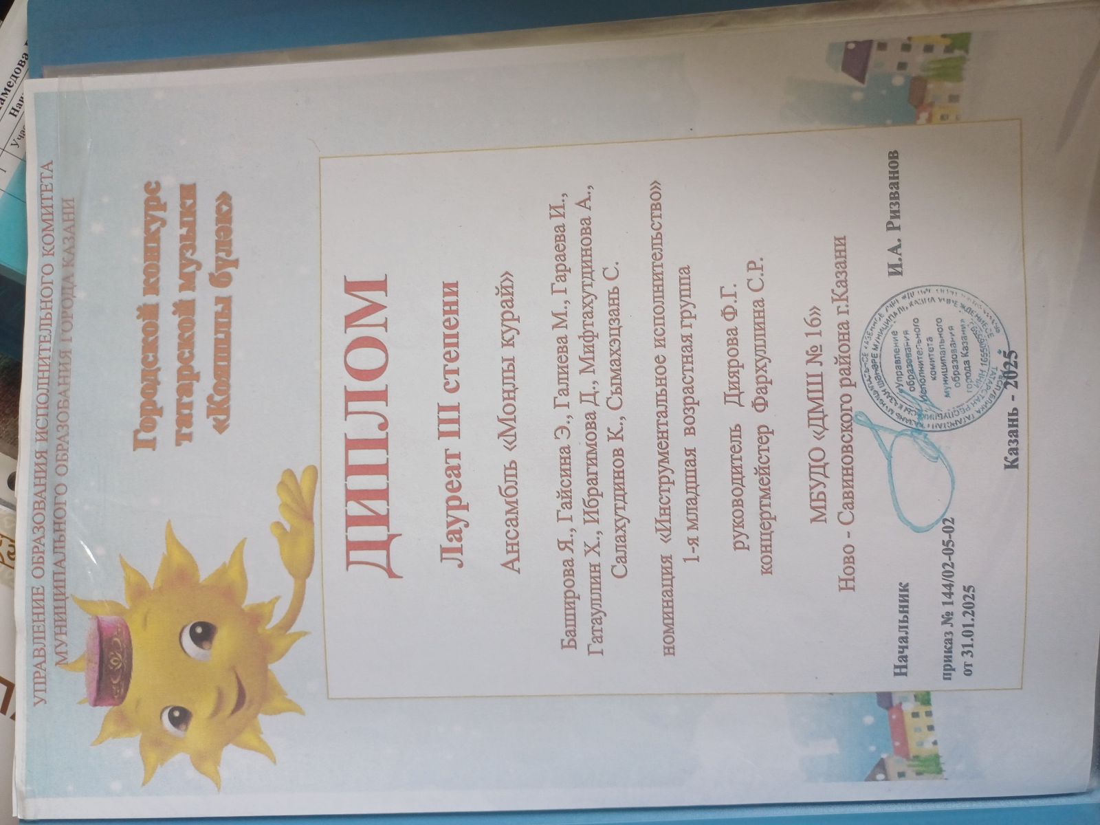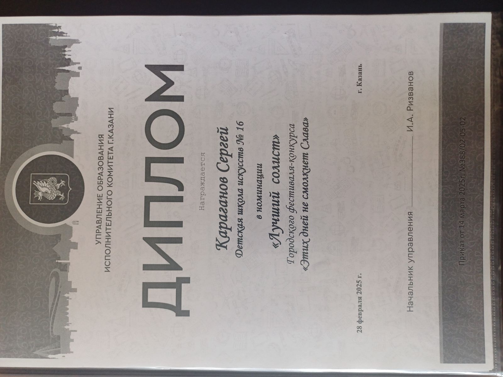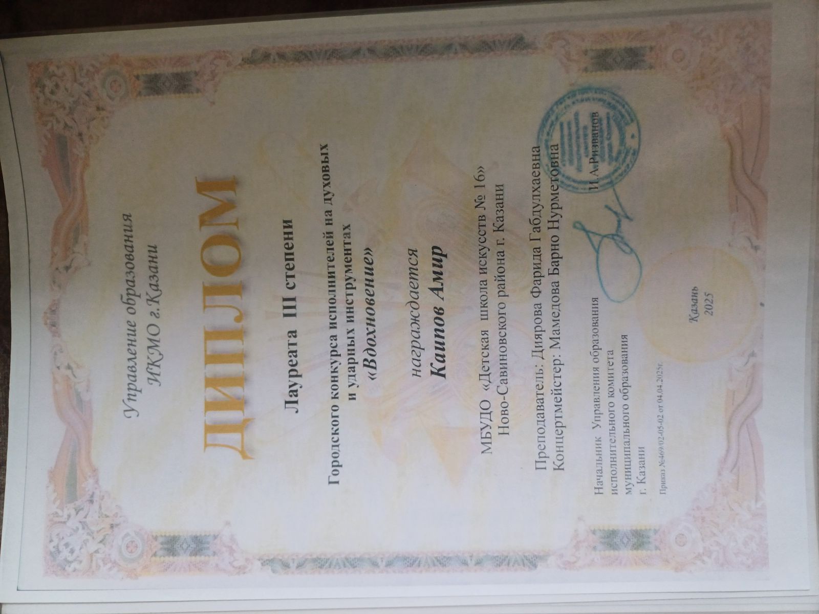 48. Абзалилов Арслан, Абзалилов Рашид - диплом. Городской конкурс "Звуки мира"