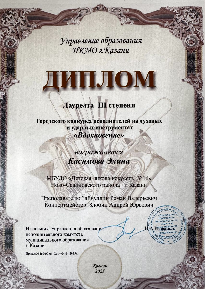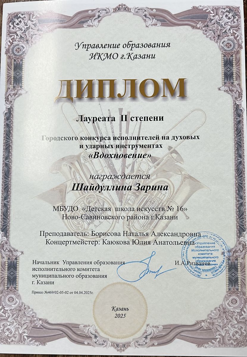 56. Шайдуллина Зарина - лауреат 2 степени. Городской конкурс исполнителей на духовых и ударных инструментах «Вдохновение»