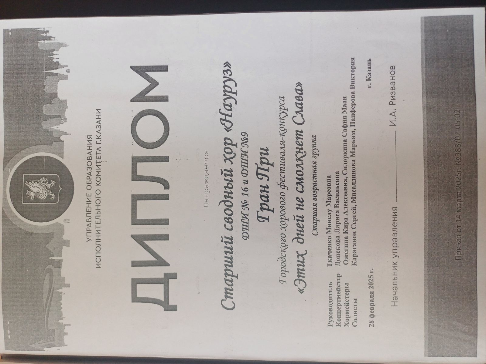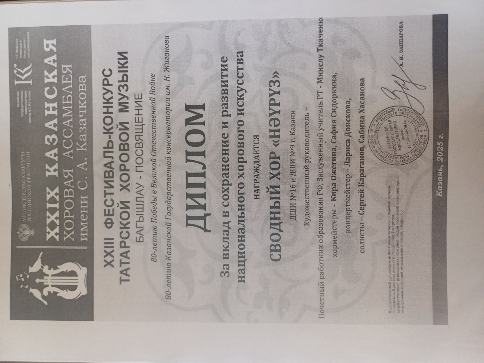 2. Сводный хор "Науруз" - диплом "За вклад в сохранение и развитие национального хорового искусства"
