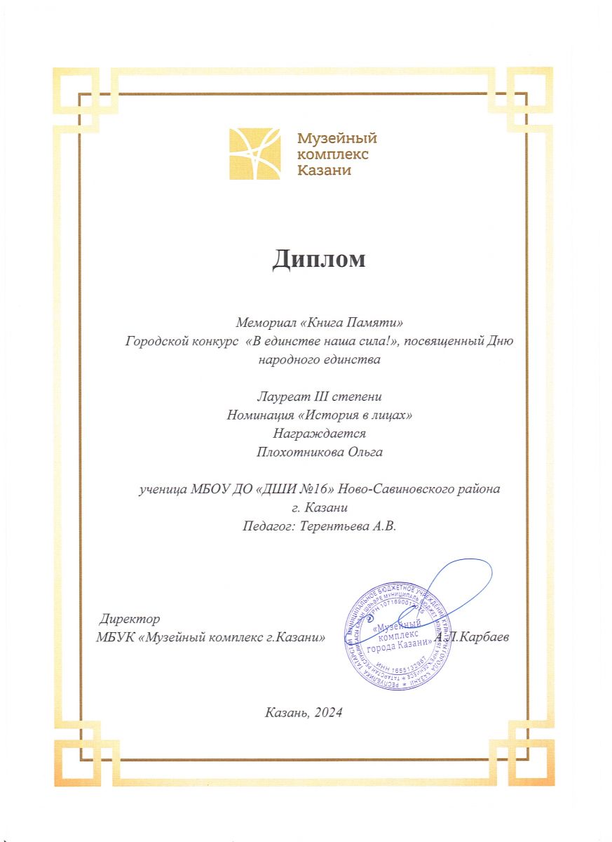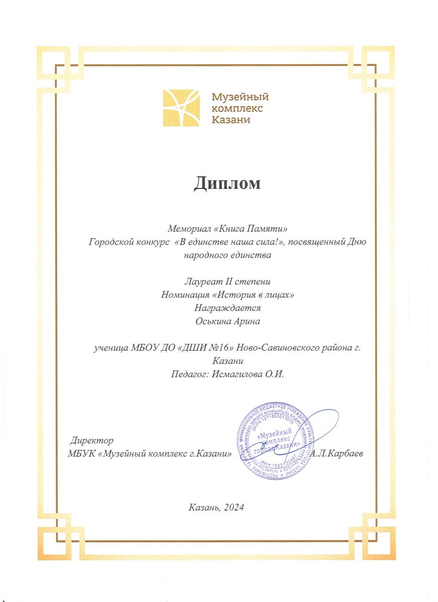 | Короткое название: | МБУ ДО "ДШИ №16" Ново-Савиновского района г.Казани |
