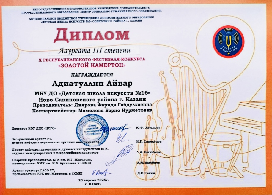 39. Адиатуллин Айвар - лауреат 3 степени. Республиканский фестиваль-конкурс «Золотой камертон»