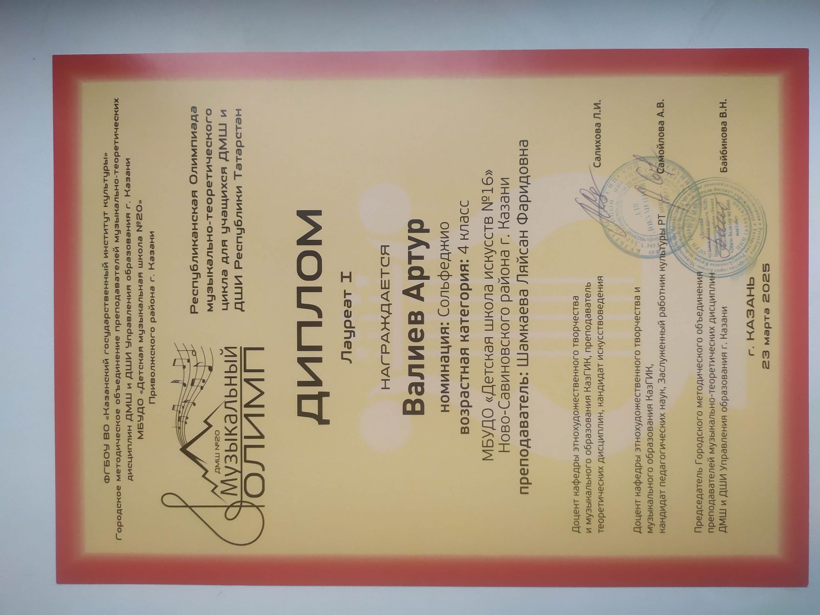 43. Валиев Артур - лауреат 1 степени. Республиканская олимпиада «Музыкальный олимп»