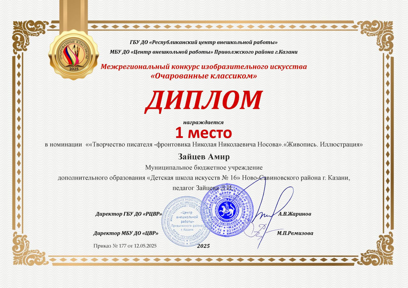 61. Зайцев Амир - Диплом. 1 место. Межрегиональный конкурс изобразительного искусства «Очарованные классиком»