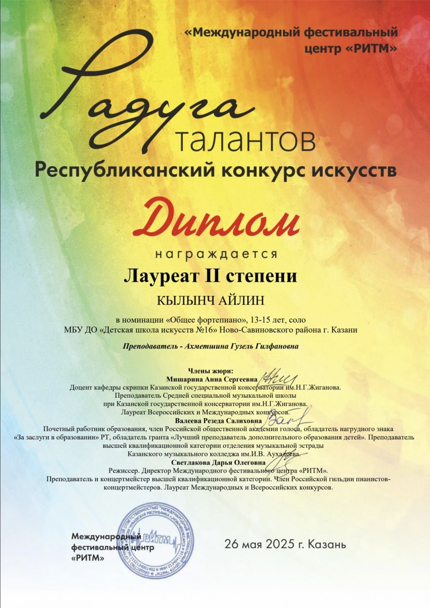 75. Кылынч Айлин - лауреат 2 степени. Республиканский конкурс искусств «Радуга талантов»