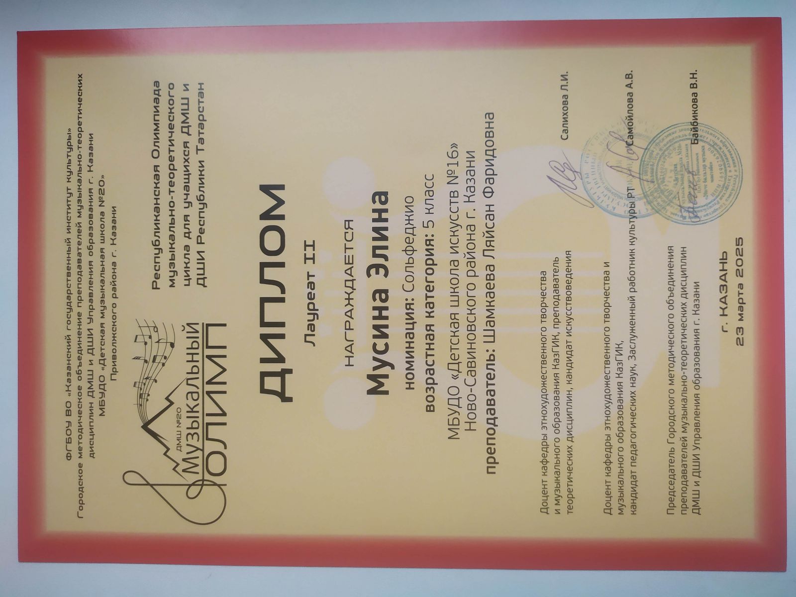 46. Мусина Элина - лауреат 2 степени. Республиканская олимпиада «Музыкальный олимп»