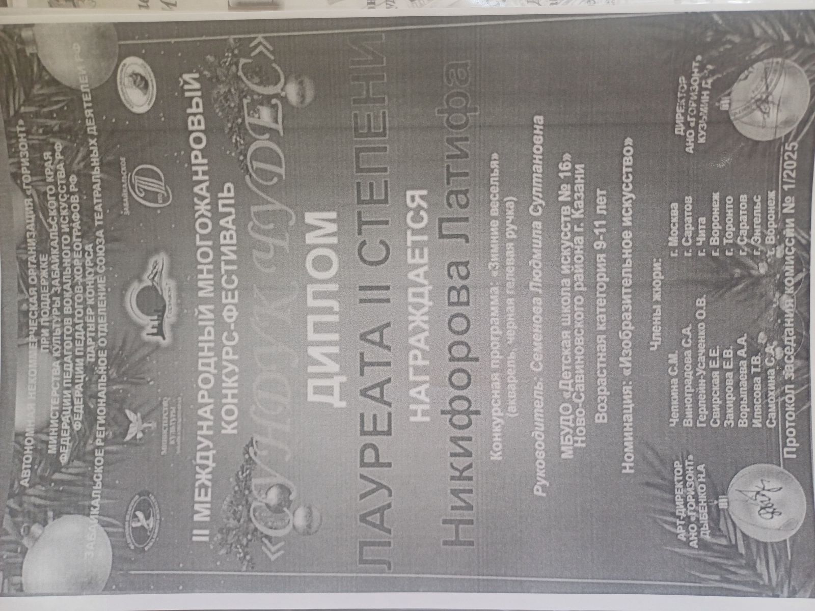 44. Гиниятуллина Ясмина. Диплом 3 степени. Международная выставка-конкурс «Солнечный круг»