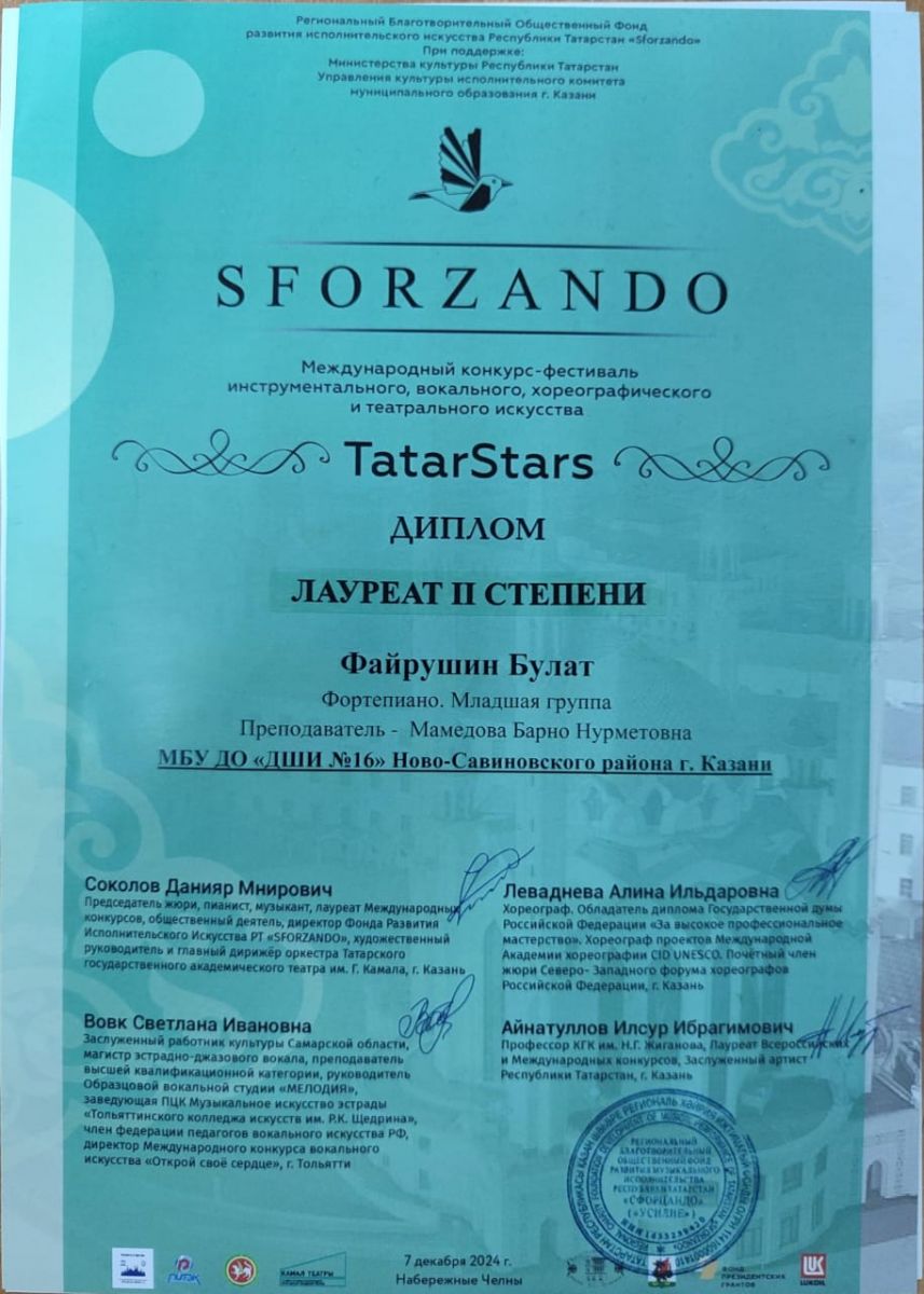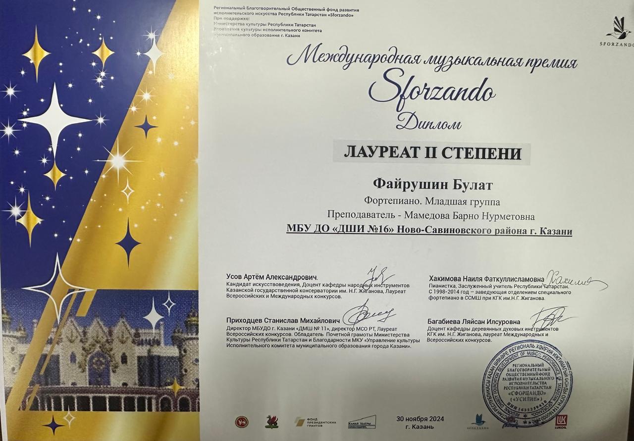 6. Файрушин Булат - лауреат 2 степени. «Международная музыкальная премия Sforzando»