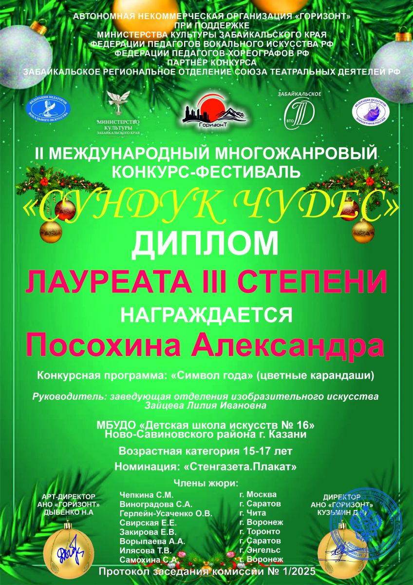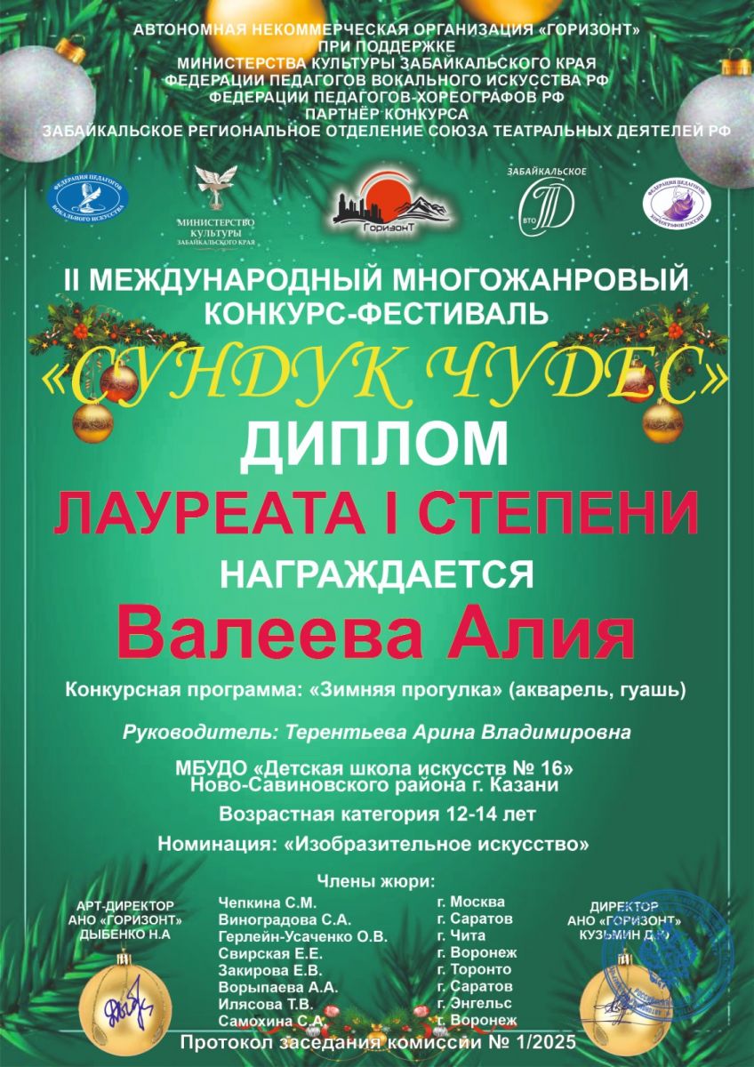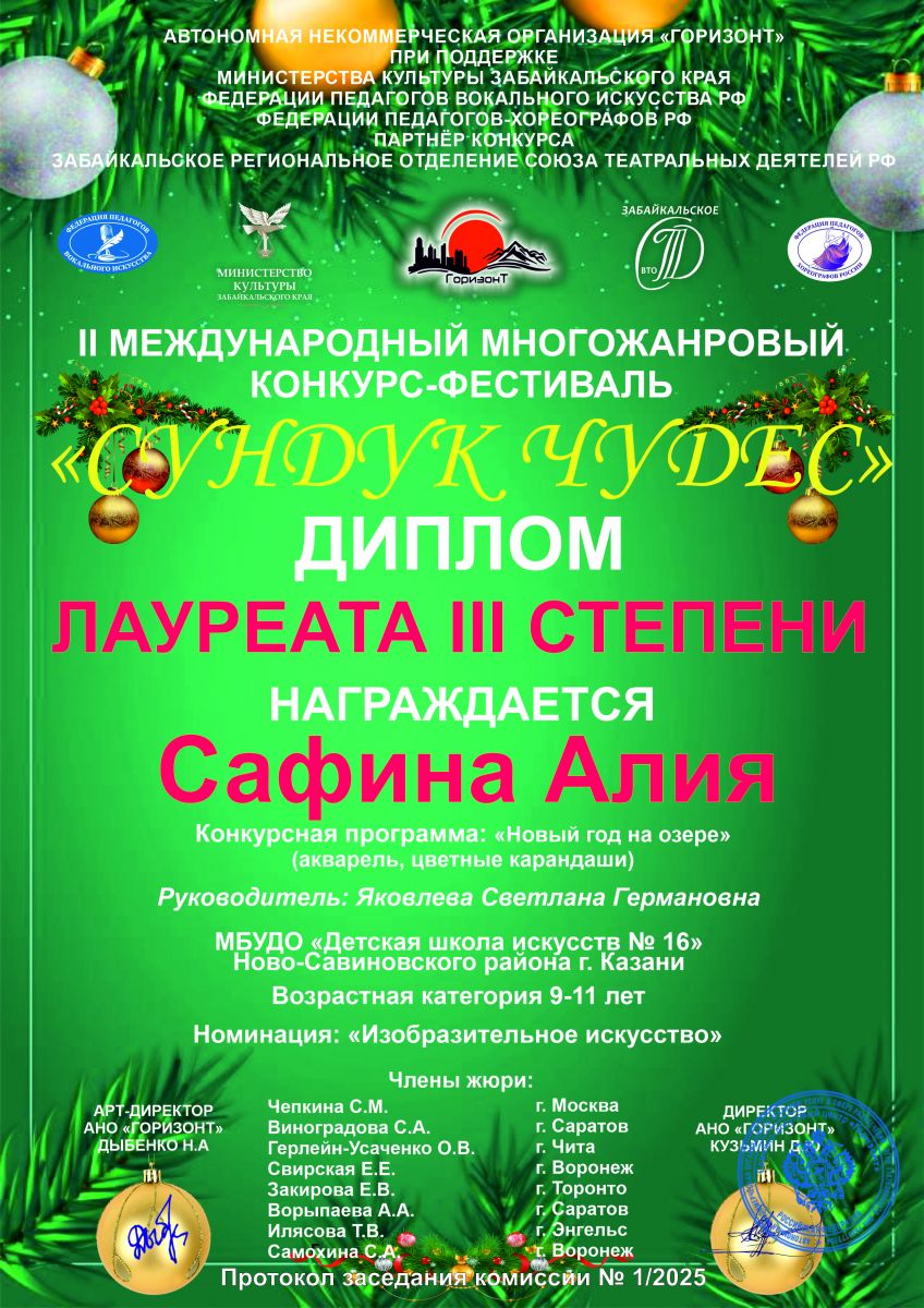 25. Сафина Алия - лауреат 3 степени. Международный многожанровый конкурс-фестиваль «Сундук чудес»