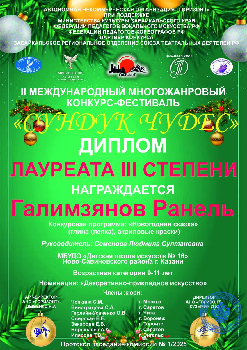 23. Галимзянов Ранель - лауреат 3 степени. Международный многожанровый конкурс-фестиваль «Сундук чудес»