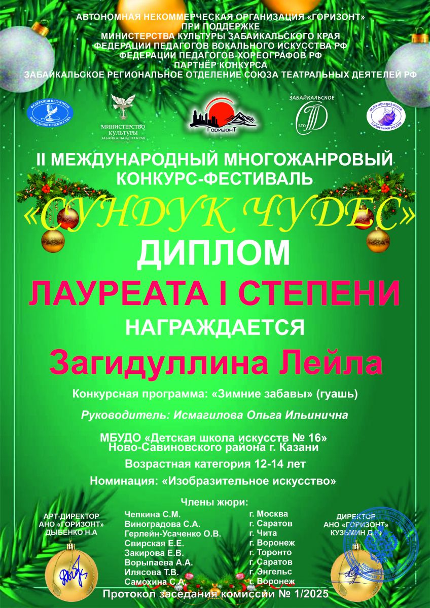 27. Загидуллина Лейла - лауреат 1 степени. Международный многожанровый конкурс-фестиваль «Сундук чудес»