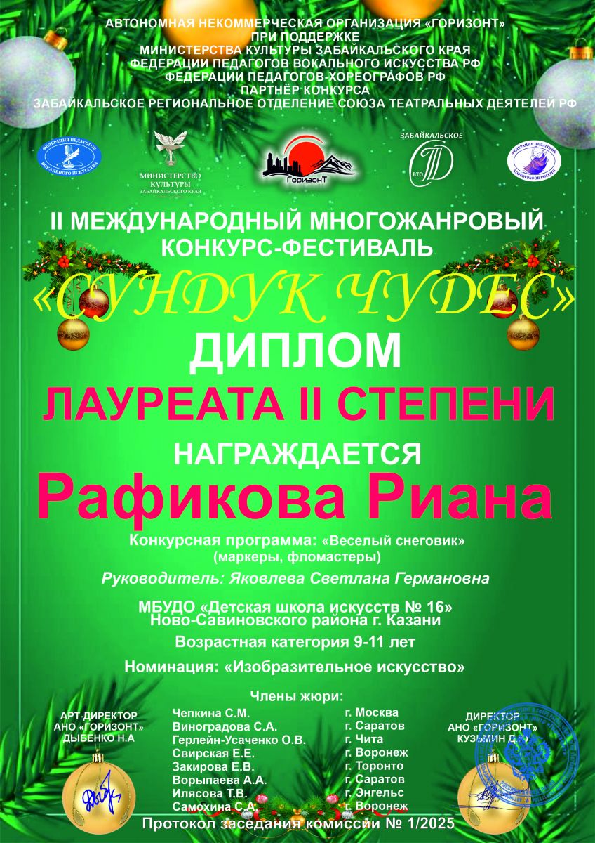 26. Рафикова Риана - лауреат 2 степени. Международный многожанровый конкурс-фестиваль «Сундук чудес»