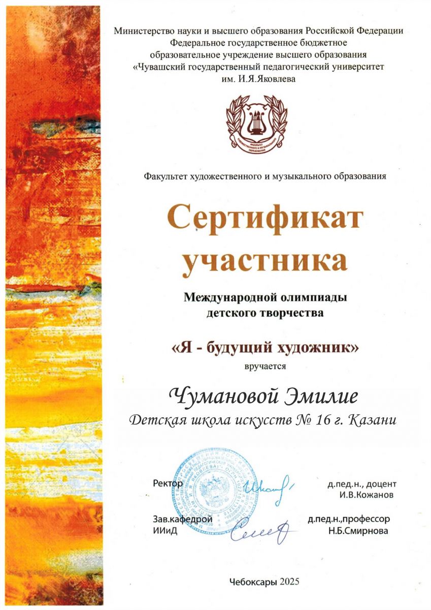 50. Чапаева Анна - диплом 3 степени. Международная олимпиада детского творчества «Я – будущий художник»