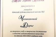 Наша ученица Чиликанова Дарья прошла на стипендия Мэра Казани под руковадством своего преподавателя Михеева Марии Ивановны! Поздравляем Вас с победой!