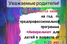 Уважаемые родители! Объявляется набор на год по предпрофессиональной программе «Акварельки» для детей в возрасте от 7-9 лет (ИЗО, лепка, ДПИ).